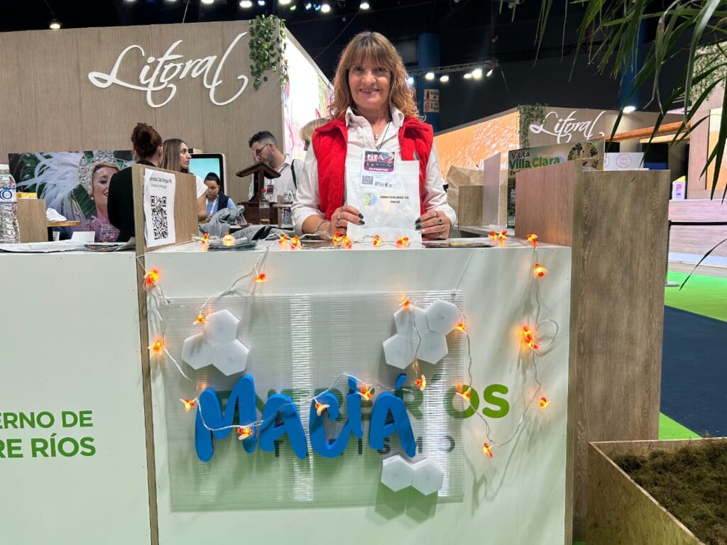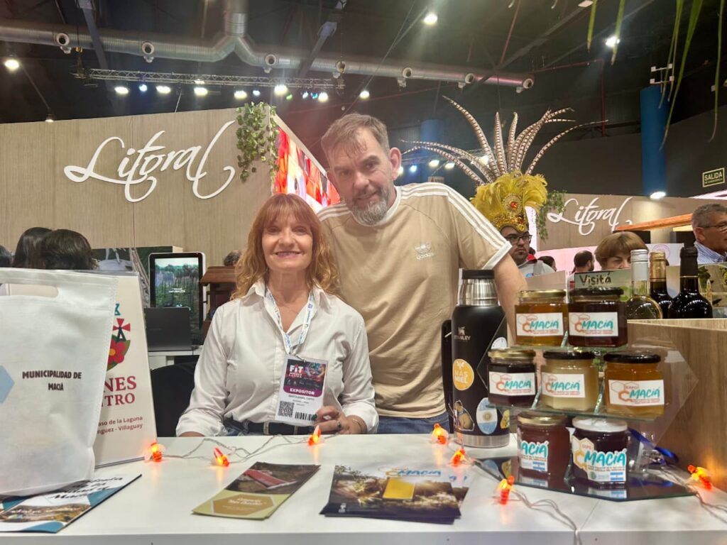 En representación de la ciudad formaron parte del stand, la directora de Cultura, Marta Cappa, el técnico Apícola Fabricio Raticelli, a cargo del Laboratorio de Especialidades Productivas de Maciá (Lepma), y el cocinero Carlos Benítez.